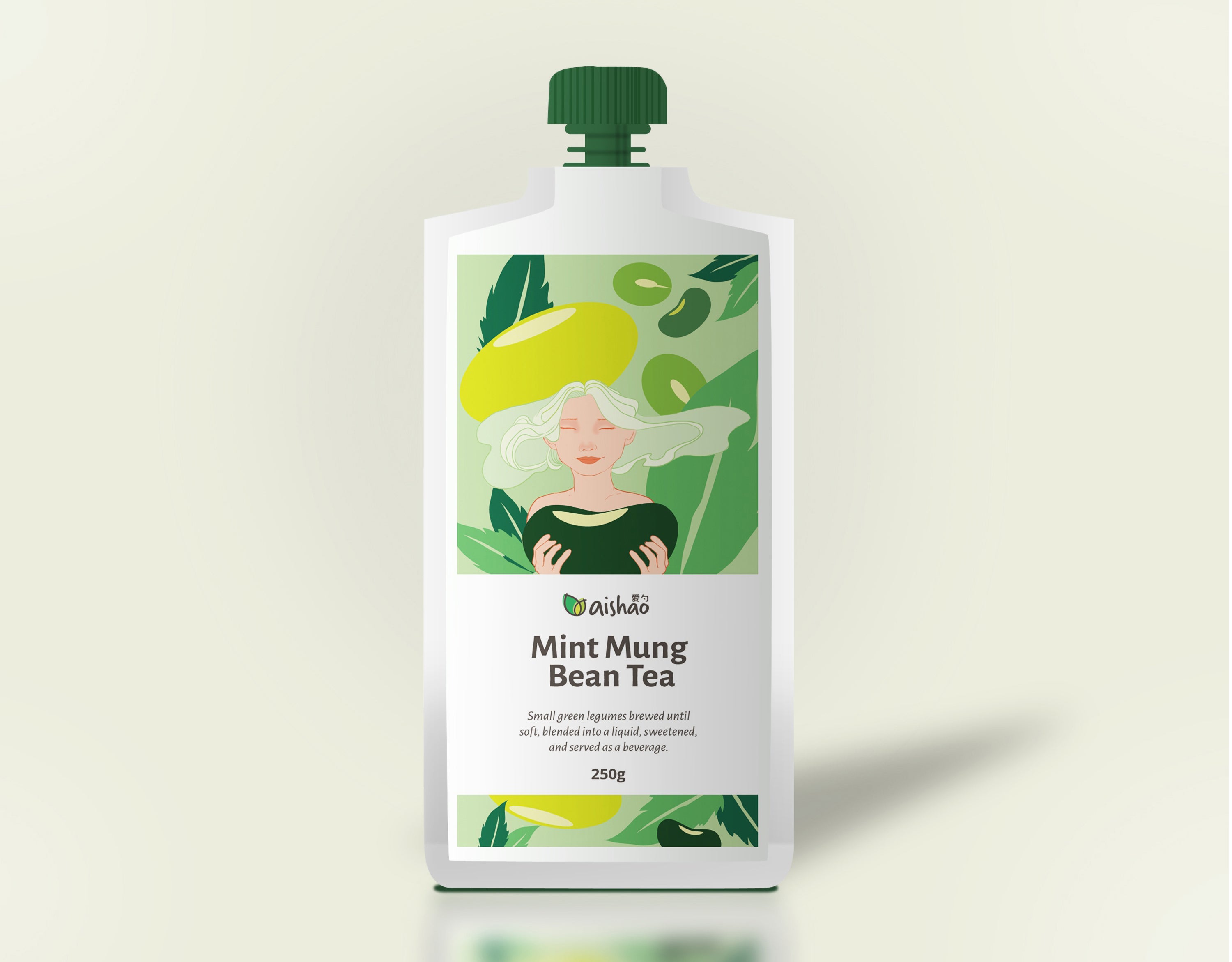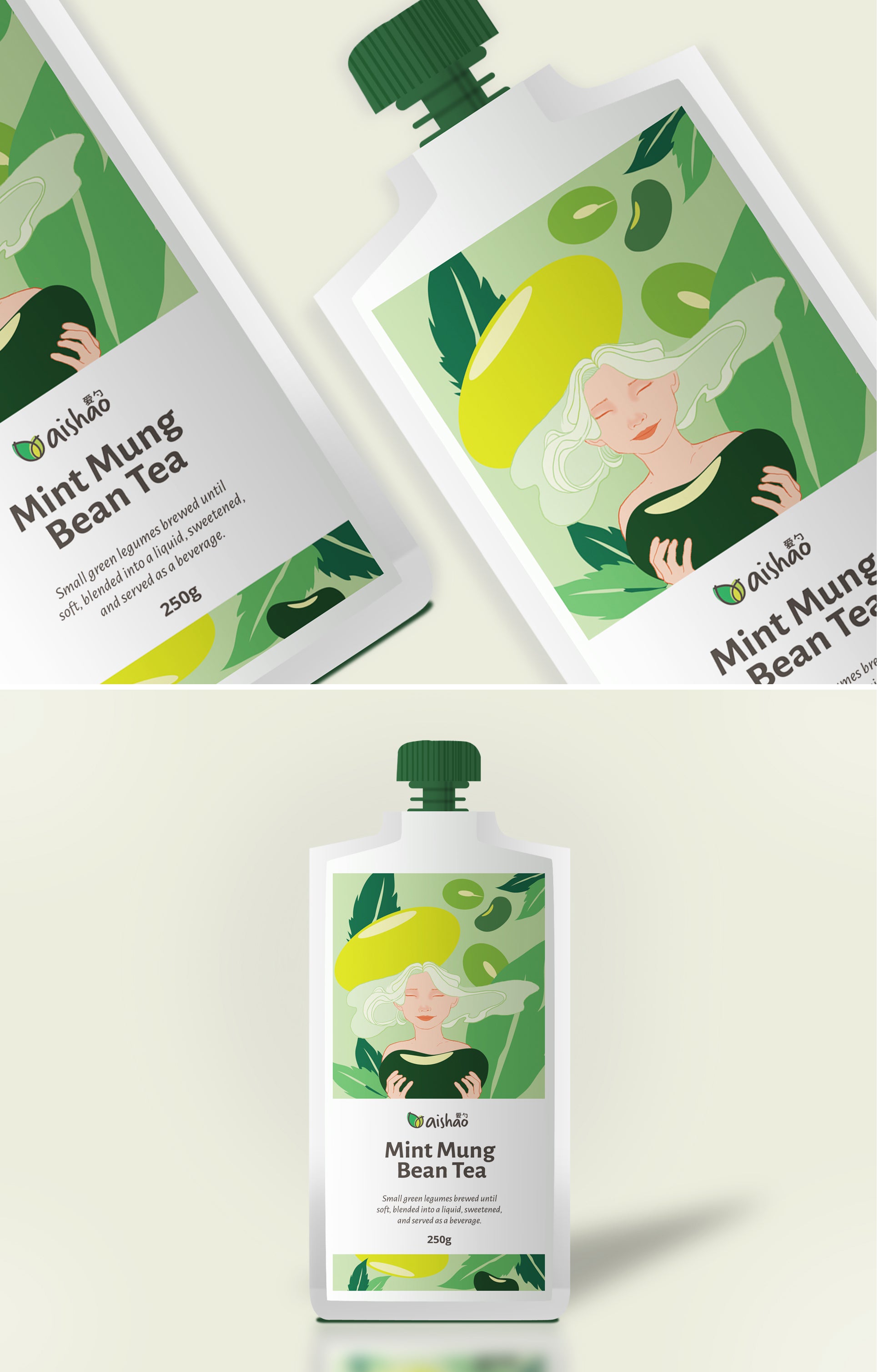 The challenge was to design the label for the pouches (both front and back labels) for 2 flavors Mung Bean &and Mint Tea & Red bean, Rose and Job Tear's Seed Tea.