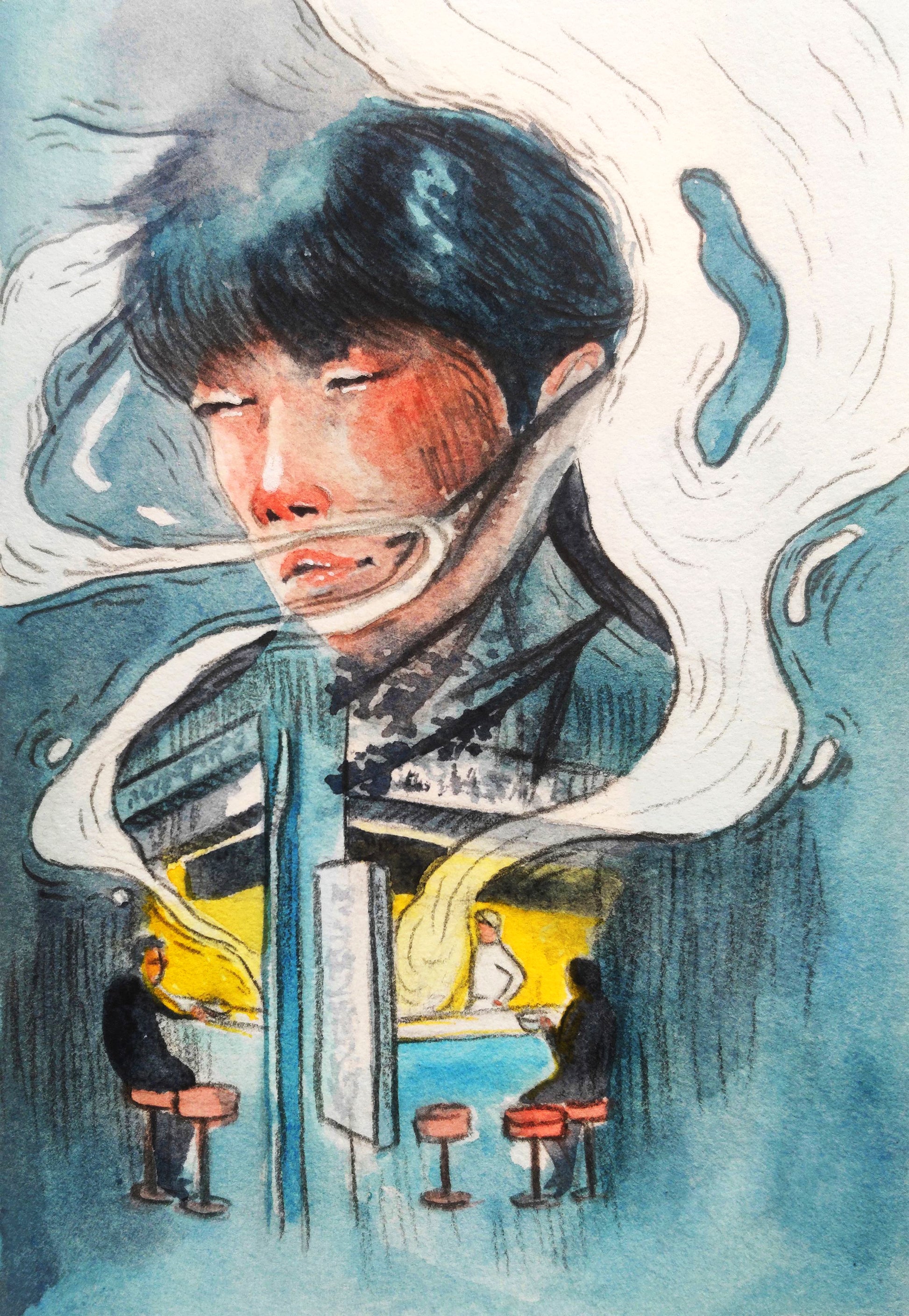 A 14.8 x 21 cm (5.8 x 8.26 in) sized artwork on watercolor paper.