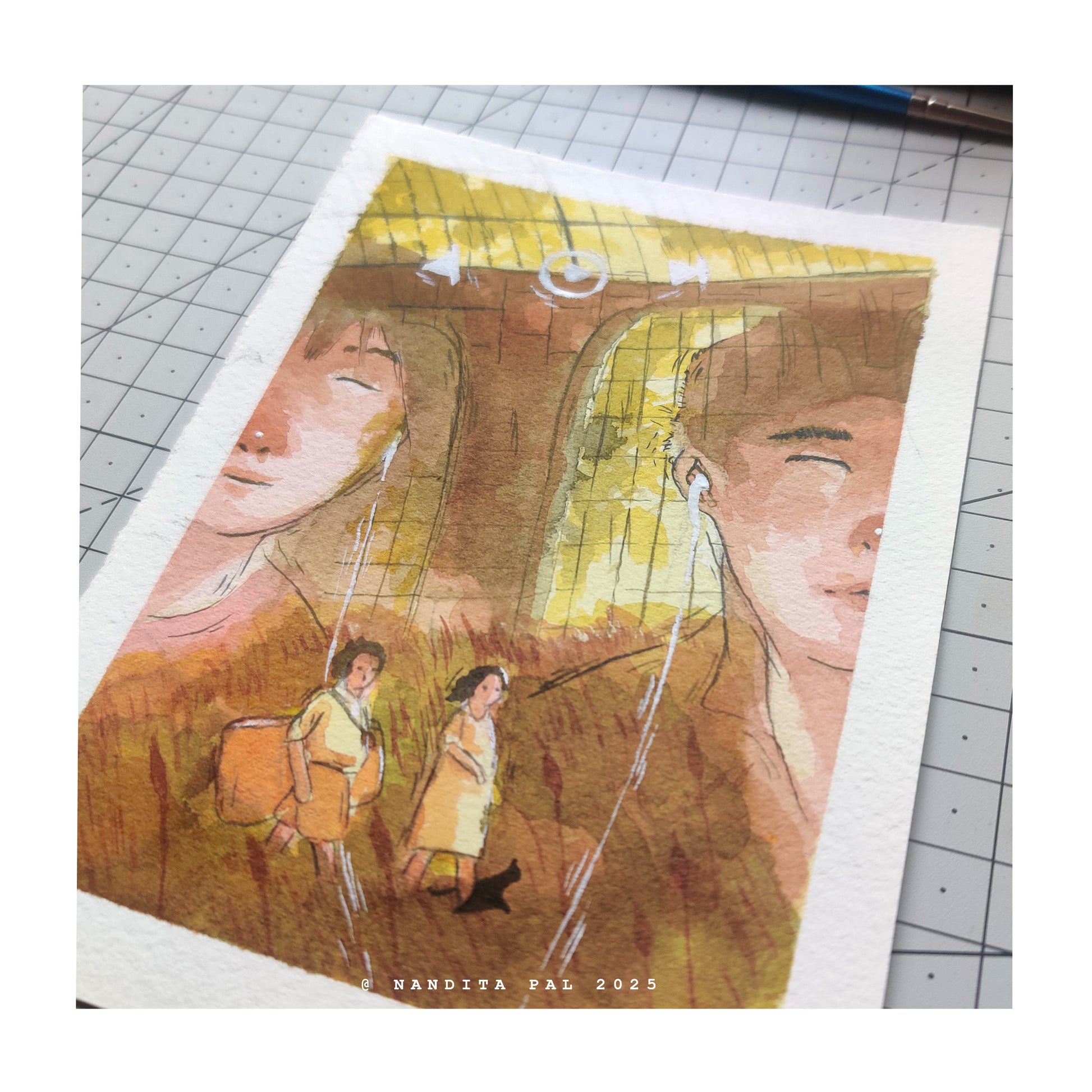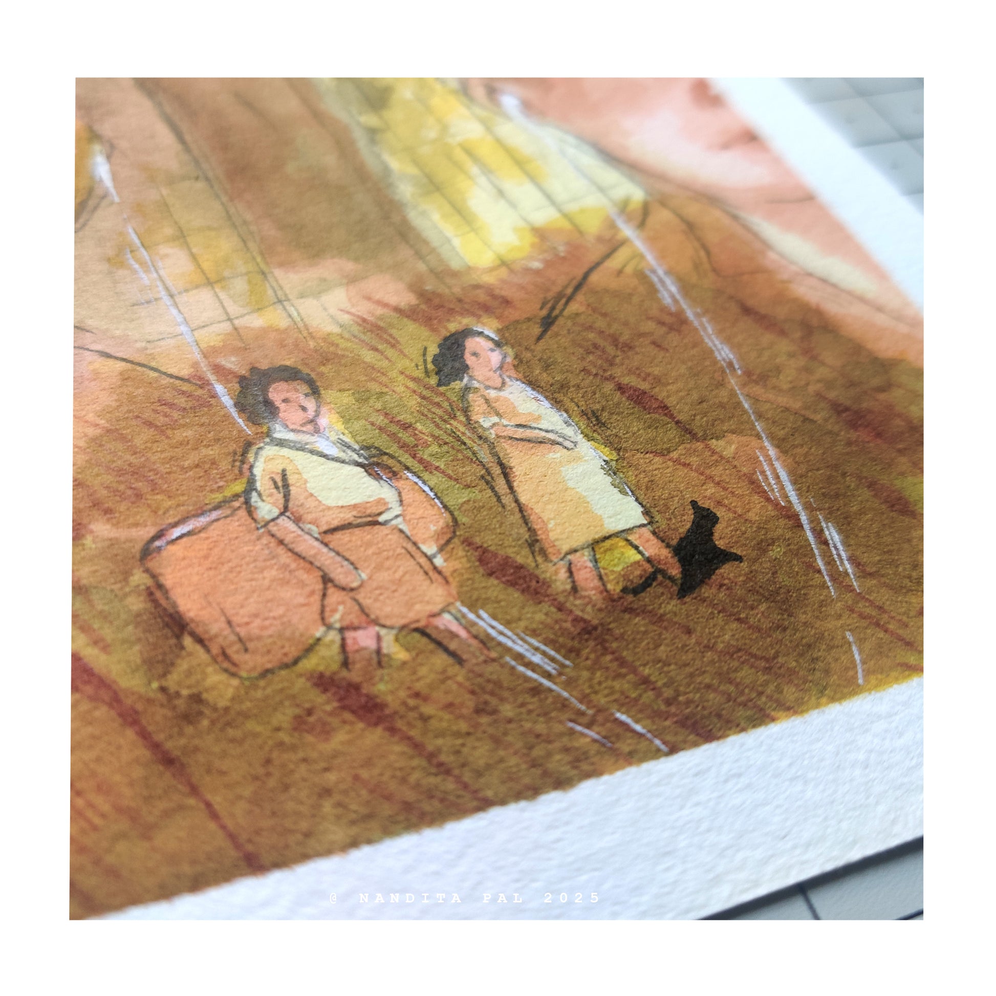 Approx 4 x 6 in sized artwork on 300 gsm watercolor paper. There is some white space around the illustration in the sketchbook page.