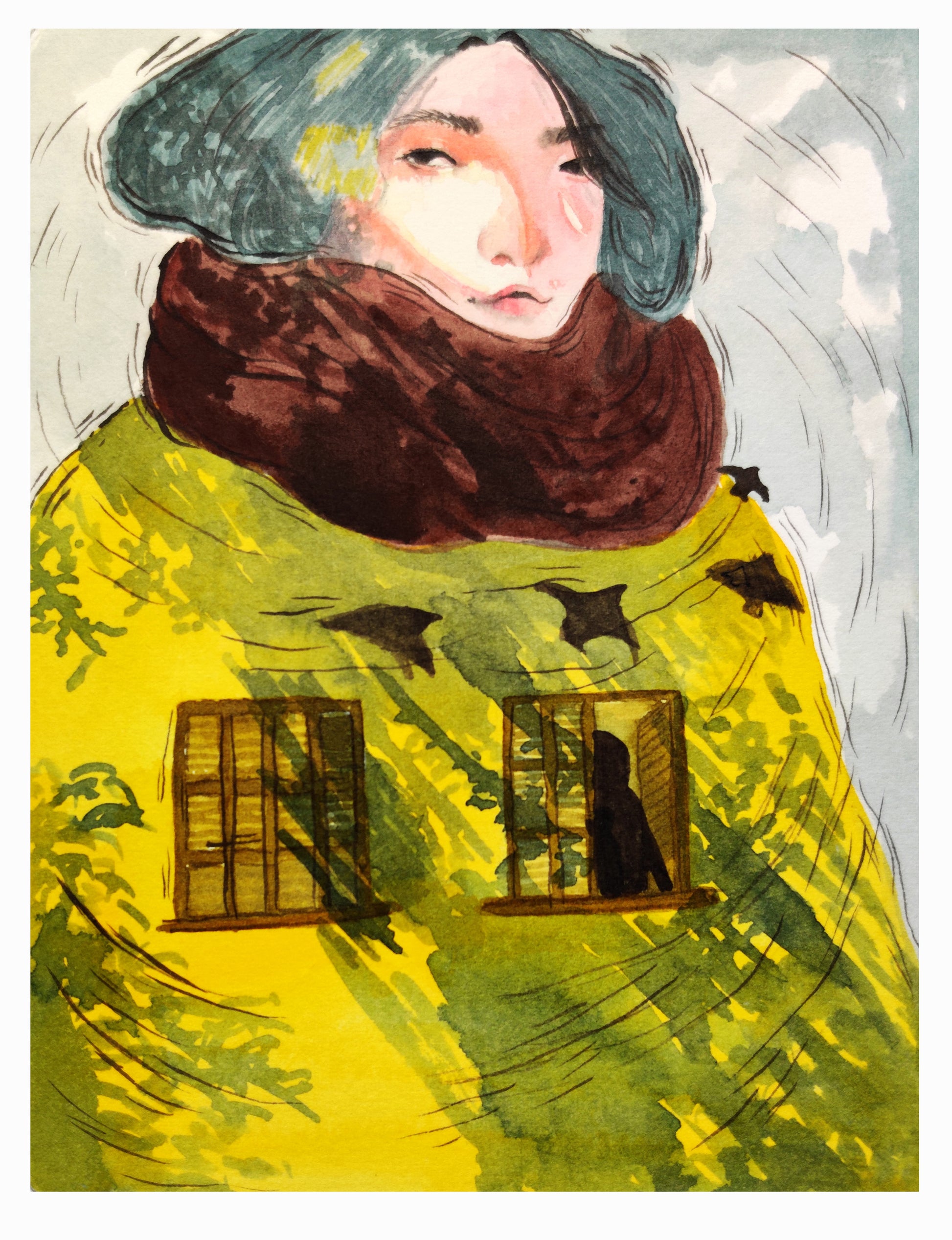 A 12.7 x 20.2 cm (5 x 8 in) sized artwork on 300 gsm watercolor paper. There is some white space around the illustration in the sketchbook page.